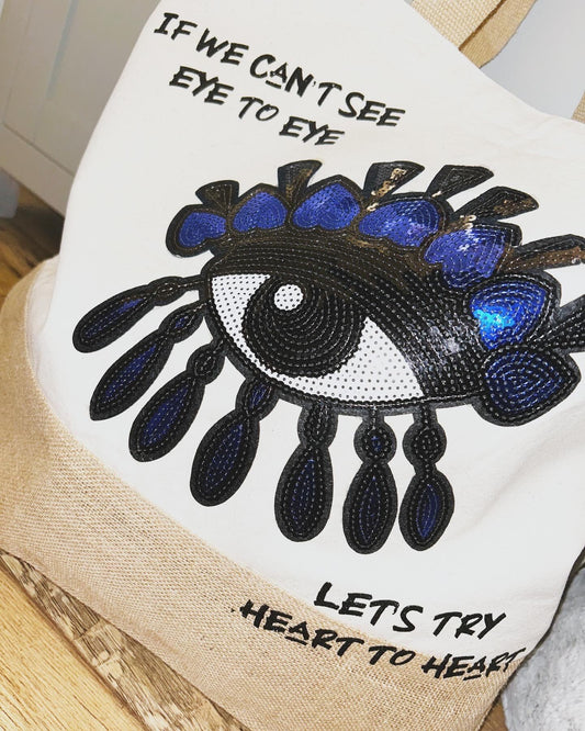 Heart to Heart blue/ black XL beach bag